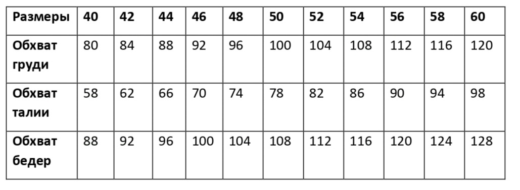 Выкройка предоставлена в размерах 40-60 в одной ростовой группе 170.